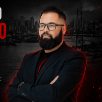 Sua identidade visual futurista em preto, branco e vermelho traduz seu estilo direto, ousado e orientado para a ação — com uma comunicação forte e conteúdos de alto valor que transformam visão em execução.